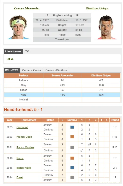 Ele está 5-1 abaixo de Zverev desde 2014, que foi sua única vitória. Desde então, ele perdeu em Indian Wells (2016), Roma (2016), Paris (2021), Roland Garros (2023) e agora Cincinnati, então o ás alemão será o favorito para fazer 3 no ano.