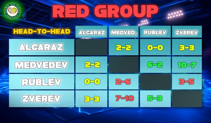 De seguida, Medvedev e Rublev vão defrontar-se no seu primeiro jogo da fase de grupos do torneio. Medvedev, número 3 do ranking ATP, tem tido muito sucesso esta época, tendo ganho dois títulos Masters em Roma e Miami, bem como chegado à final do US Open.