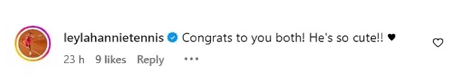 "Parabéns aos dois! Ele é tão giro!!! ♥️", escreveu Leylah Fernandez.