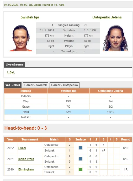 A próxima adversária é Jelena Ostapenko, que chegou ao Open dos Estados Unidos com derrotas precoces para Jennifer Brady e Elena Rybakina em Montreal e Cincinnati e que, apesar de ter tido azar nas rondas iniciais, conseguiu criar este empate intrigante.