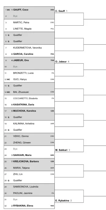 Já Rybakina poderá voltar a defrontar Liudmila Samsonova, num sorteio terrível para a cazaque. Marketa Vondrousova era suposto jogar este torneio, mas foi forçada a desistir devido a uma lesão no cotovelo esquerdo.