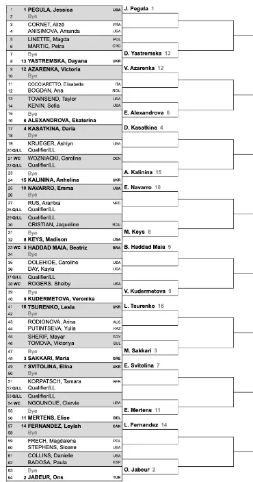 Jessica Pegula. Ela poderá enfrentar Amanda Anisimova na segunda ronda, que enfrenta Alize Cornet na primeira ronda.